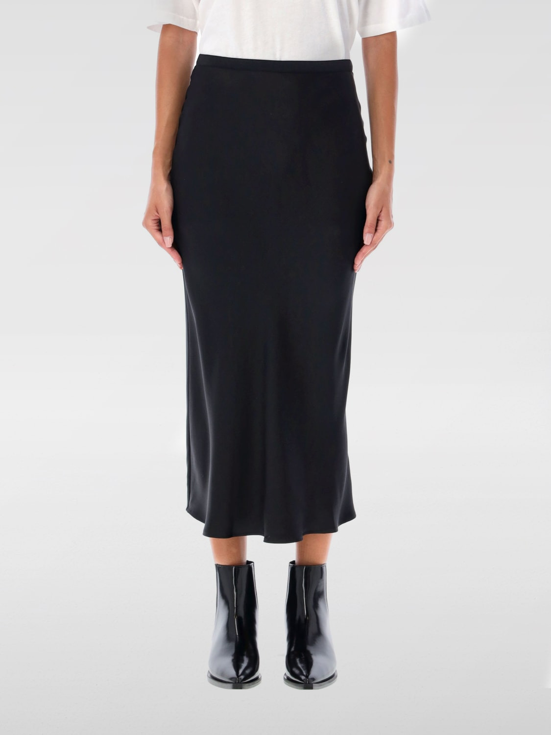 DESCRIPTION - Style: Minimal - Waist: Stretch - Bottom: With straight hemline - Length: Midi skirts - Materials: Silk - Pattern: Plain-colored DETAILS AND CARE Composition 100% silk SIZE AND FIT Sizes not available Size and fit Regular fit Designer code: A044001000 BLACK Giglio Code: H24957 Designer: Anine Bing Collection: Anine Bing Woman Category: Clothing Anine Bing