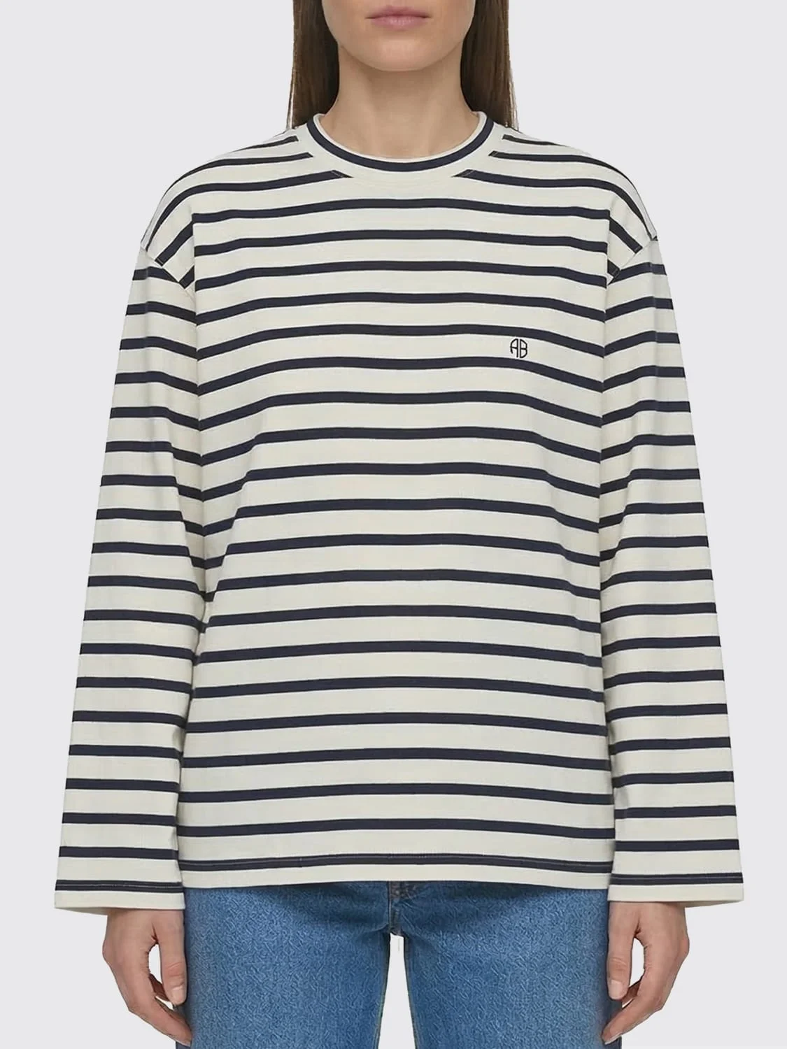 DESCRIPTION - Style: Casual, Urban-street - Logo: Contrasting - Model: Crewneck - Neckline: Crewneck - Shoulders: Relaxed - Sleeves: Long - Bottom: With straight hemline - Materials: Cotton - Pattern: Stripes DETAILS AND CARE Composition 100%CO SIZE AND FIT Sizes not available Size and fit Relaxed fit Designer code: A0811995 STR15 Giglio Code: I13348 Designer: Anine Bing Collection: Clothing Anine Bing Category: Clothing > T-Shirt