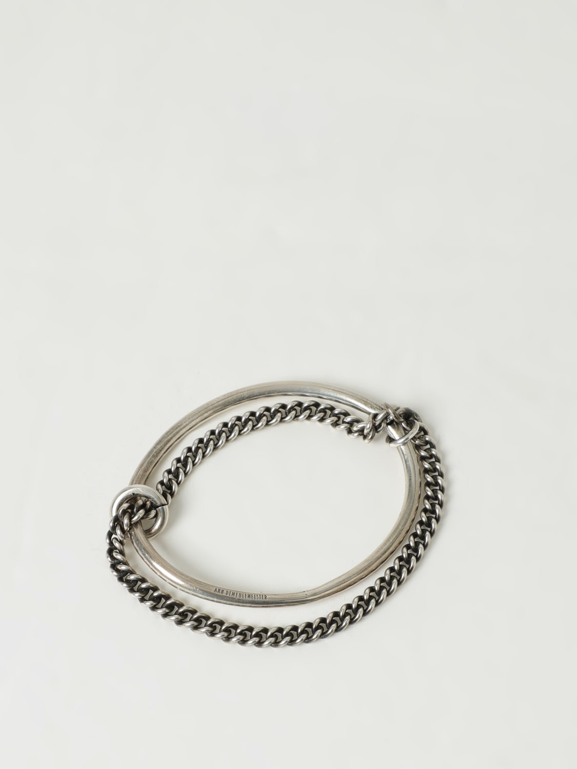 DESCRIPTION - Logo: Lettering - Details: Metal mesh - Model: Firm - Closure: Absent - Materials: 925 silver - Pattern: Plain-colored DETAILS AND CARE Composition 925 Sterling Silver SIZE AND FIT Sizes not available Designer code: B0012667JW020 070 Giglio Code: H04690 Designer: Ann Demeulemeester Collection: Ann Demeulemeester Woman Category: Accessories Ann Demeulemeester