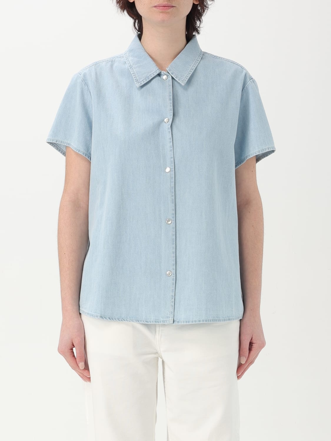 DESCRIPTION - Style: Casual - Neck: Classic - Shoulders: Relaxed - Closure: With buttons - Bottom: With curved hemline - Materials: Denim - Pattern: Plain-colored DETAILS AND CARE Composition 100 AF SIZE AND FIT Sizes not available Size and fit Relaxed fit Designer code: COGXXF12440 IAV Giglio Code: 424030 Designer: A.P.C. Collection: A.P.C. Woman Category: Clothing A.P.C.