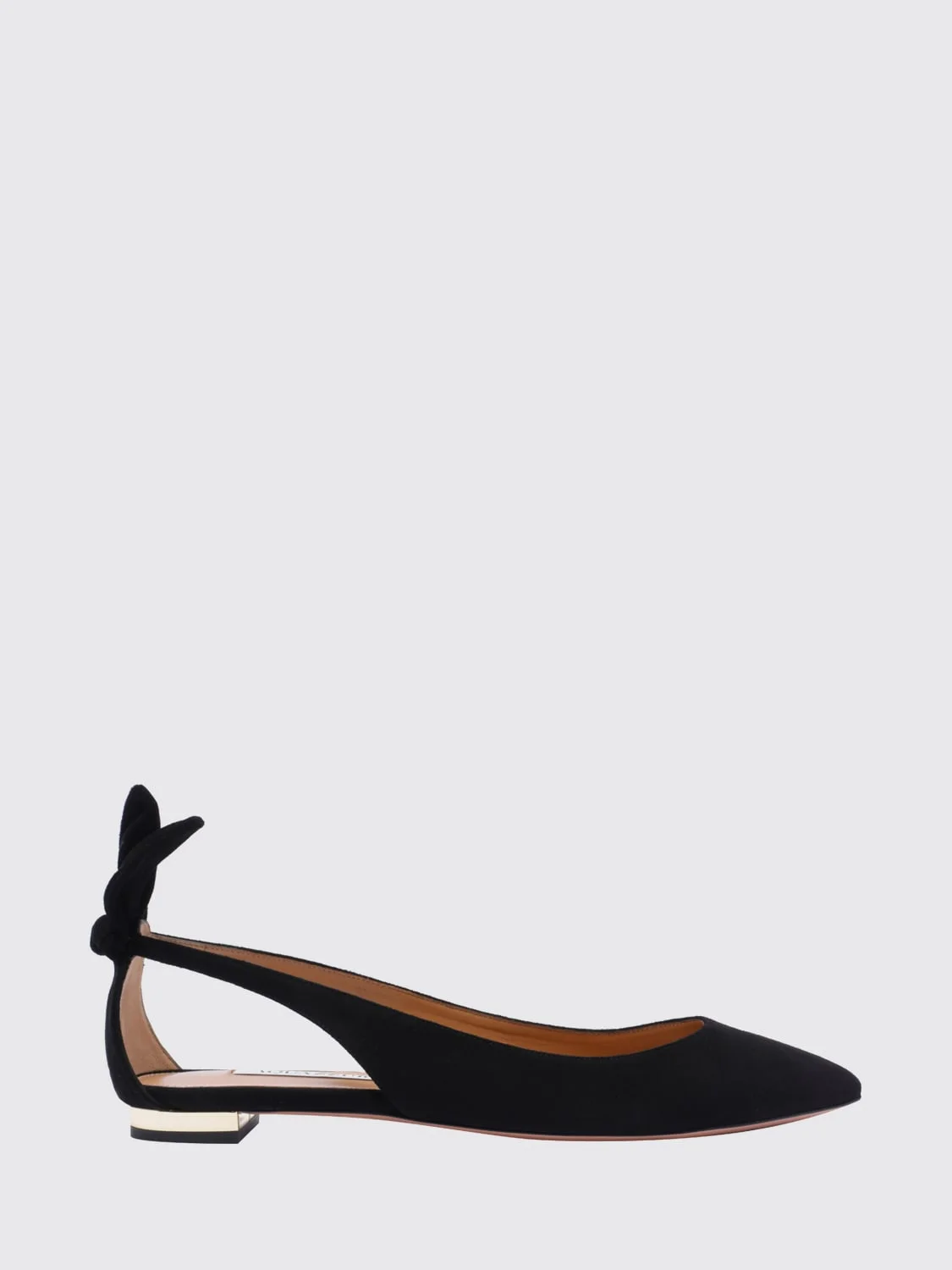 DESCRIPTION - Style: Chic - Lining: Leather, With logo - Model: Ballet flats, Cut-out - Toe: Almond - Sole: Leather - Details: With knot - Occasion: Morning - Materials: Suede calfskin - Pattern: Plain-colored DETAILS AND CARE Composition 100% suede calf leather/leather sole SIZE AND FIT Sizes not available Designer code: DENFLAB0SUE 000 Giglio Code: H82502 Designer: Aquazzura Collection: Shoes Aquazzura Category: Shoes > Ballet flat