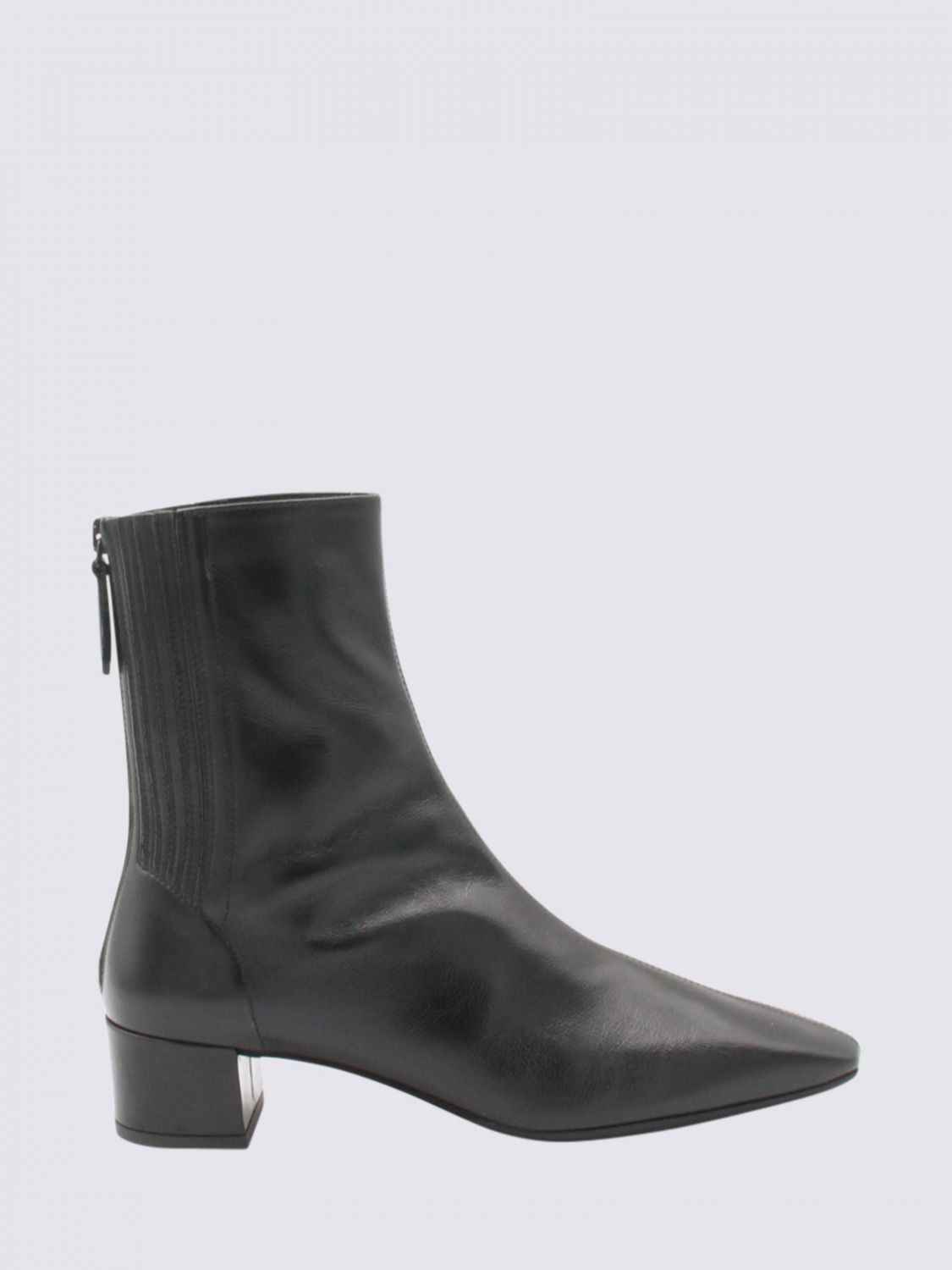 DESCRIPTION - Lining: Leather, With logo - Closure: Back closure with zip - Toe: Squared, Tapered - Shaft: Low - Sole: Rubber - Occasion: Morning - Heel: Tacco medio quadrato - Materials: Smooth calfskin - Pattern: Plain-colored - Model: Tronchetto DETAILS AND CARE Composition Sole rubber cover leather SIZE AND FIT Sizes Heel: 5 cm Designer code: SHOMIDB8NSI 000 Giglio Code: H49899 Designer: Aquazzura Collection: Aquazzura Woman Category: Shoes Aquazzura