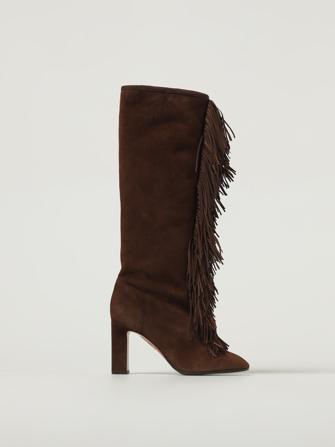 DESCRIPTION - Details: With fringes - Lining: Leather, With logo - Model: Slip on - Toe: Almond - Shaft: Knee-high - Sole: Leather - Materials: Suede calfskin - Pattern: Plain-colored DETAILS AND CARE Composition 100% suede leather/leather and rubber sole SIZE AND FIT Sizes Heel: 8,5 cm Designer code: GYTMIDB1SUE ESP Giglio Code: G76430 Designer: Aquazzura Collection: Aquazzura Woman Category: Shoes Aquazzura