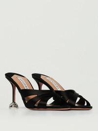DESCRIPTION - Occasion: Evening and party - Details: With rhinestones - Lining: With logo - Model: Slip on - Toe: Round - Sole: Leather - Heel: High heel - Materials: Satin - Pattern: Plain-colored DETAILS AND CARE Composition 100% fabric/leather sole SIZE AND FIT Sizes Heel: 8,5 cm Designer code: KQYMIDM0SAT 000 Giglio Code: H24722 Designer: Aquazzura Collection: Aquazzura Woman Category: Shoes Aquazzura