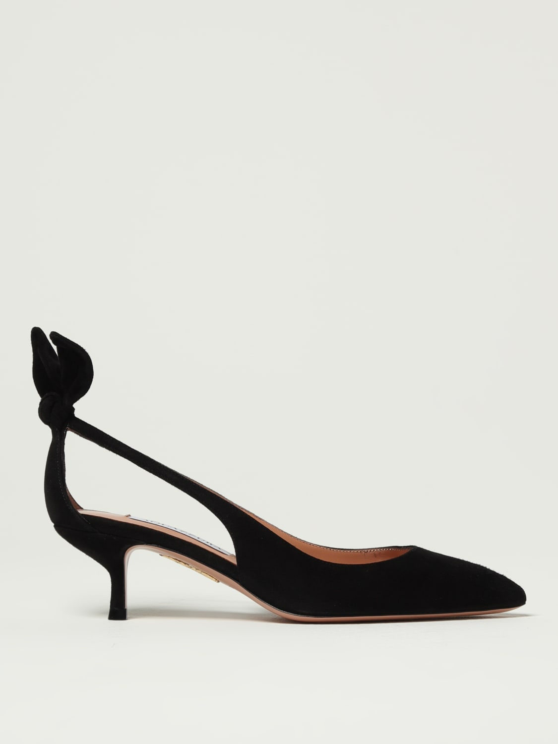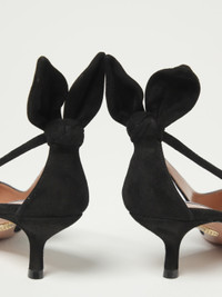 DESCRIPTION - Lining: With logo - Toe: Almond - Sole: Leather - Details: With knot - Heel: undefined - Materials: Suede calfskin - Pattern: Plain-colored DETAILS AND CARE Composition 100% suede leather/leather sole SIZE AND FIT Sizes Heel: 5 cm Designer code: DENMIDP2SUE 000 Giglio Code: H13408 Designer: Aquazzura Collection: Aquazzura Woman Category: Shoes Aquazzura