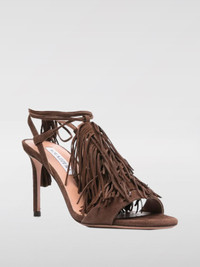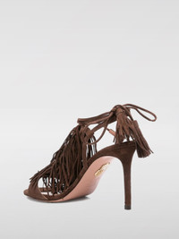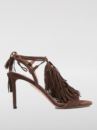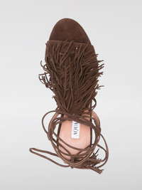 DESCRIPTION - Details: With fringes - Lining: With logo - Model: Slip on - Closure: With bands to tie - Toe: Round - Ankle: With ribbon to tie - Sole: Leather - Heel: undefined - Materials: Suede calfskin - Pattern: Plain-colored DETAILS AND CARE Composition Suede | 100% KID SUEDE LEATHER SIZE AND FIT Sizes Heel: 8,5 cm Designer code: GYTMIDS0SUE ESPRESSO Giglio Code: G53879 Designer: Aquazzura Collection: Aquazzura Woman Category: Shoes Aquazzura