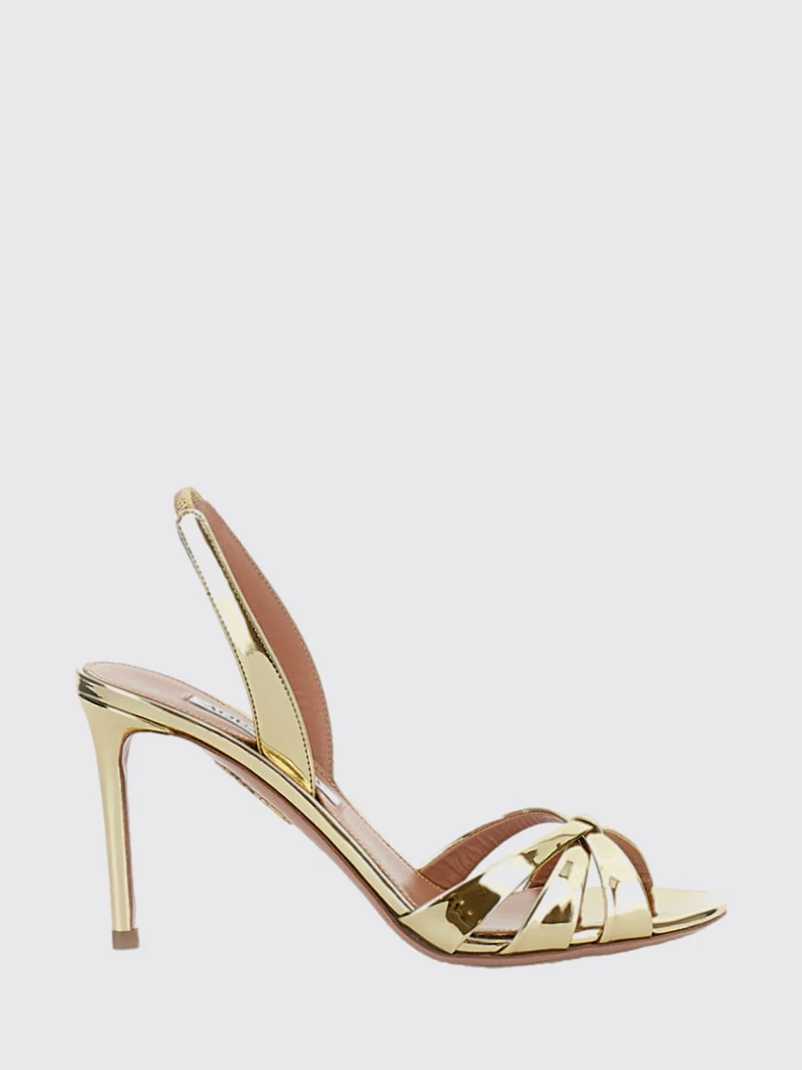 DESCRIPTION - Style: Elegant - Occasion: Ceremony and cocktail, Evening and party - Lining: Leather, With logo - Model: Slingback - Toe: Open, Round - Sole: Leather - Heel: Tacco alto a stiletto - Materials: Patent leather - Pattern: Plain-colored DETAILS AND CARE Composition 100% PATENT LEATHER SIZE AND FIT Sizes Heel: 8,5 cm Designer code: TTIMIDS0SSY SOG Giglio Code: I13534 Designer: Aquazzura Collection: Shoes Aquazzura Category: Shoes > Heeled sandal