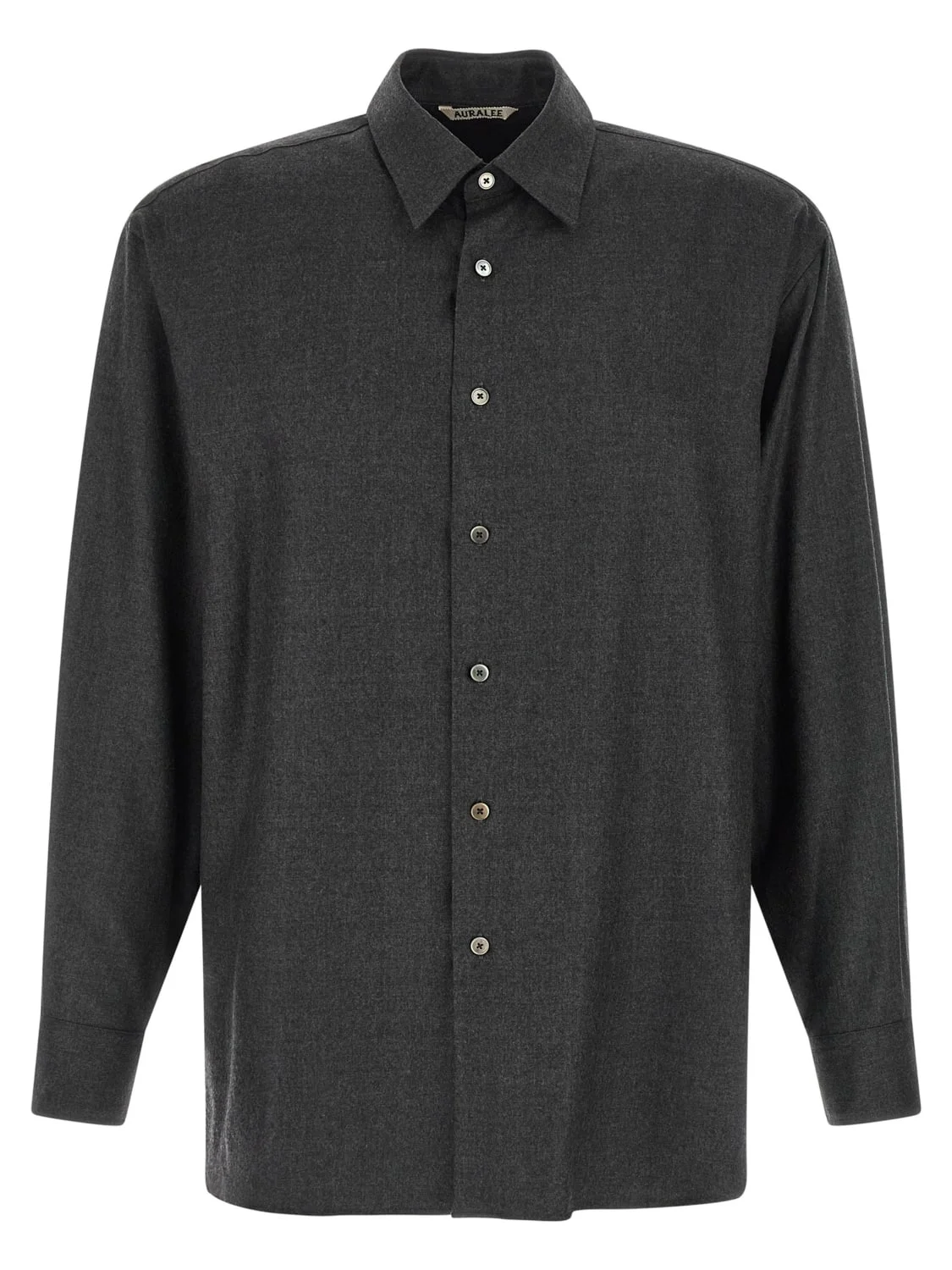 DESCRIPTION - Style: Casual, Minimal - Neck: French - Shoulders: Relaxed - Closure: With buttons - Bottom: With curved hemline - Sleeves: Long sleeve shirts - Materials: Wool - Pattern: Plain-colored DETAILS AND CARE Composition 100% wool SIZE AND FIT Sizes not available Size and fit Relaxed fit Designer code: A25AS01OS TOPCHARCOAL Giglio Code: H77053 Designer: Auralee Collection: Auralee Men Category: Clothing Auralee