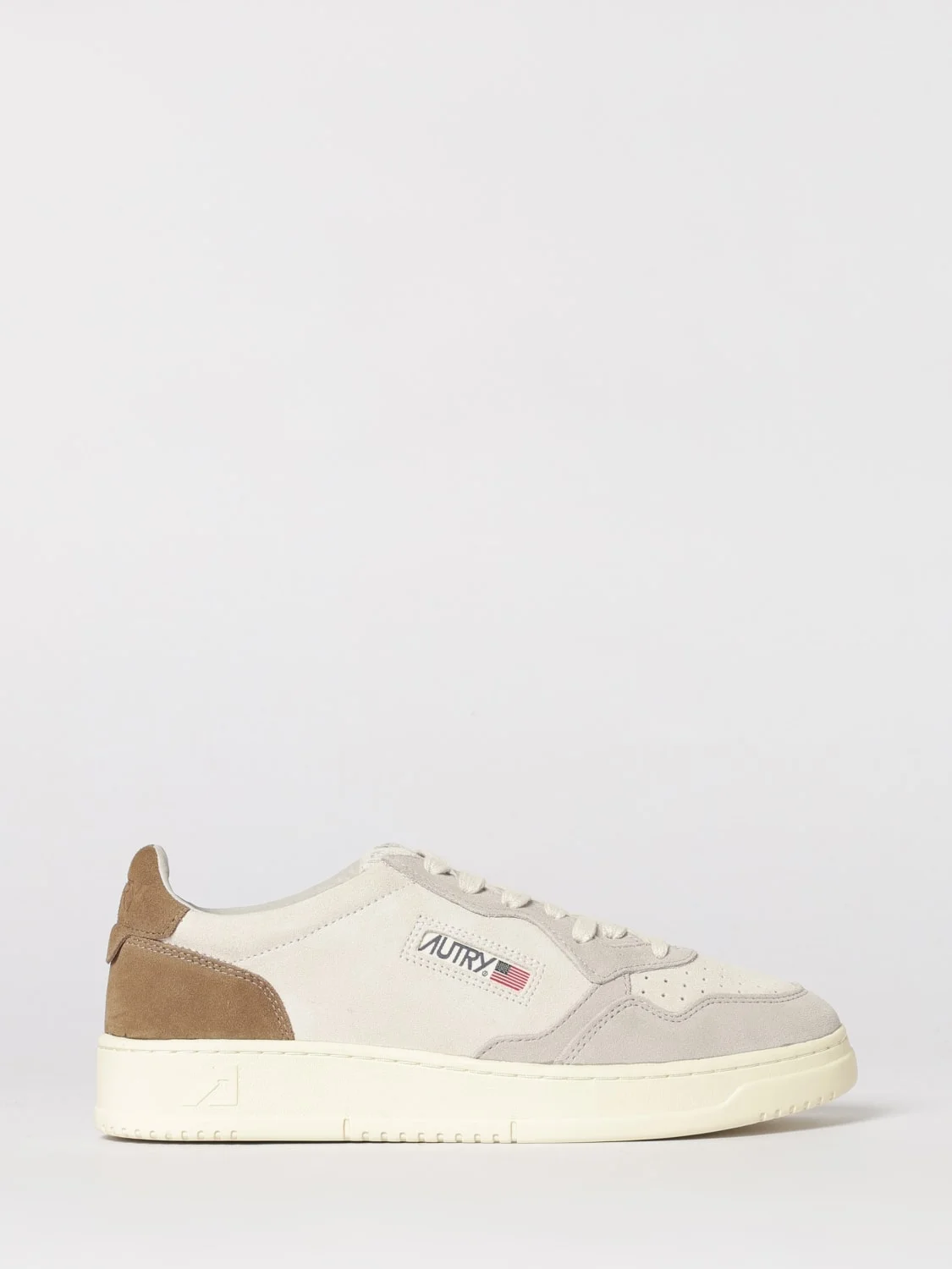 MEDALIST LOW TRICOLOR SNEAKERS IN WHITE CIGAR AND VAPOR SUEDE