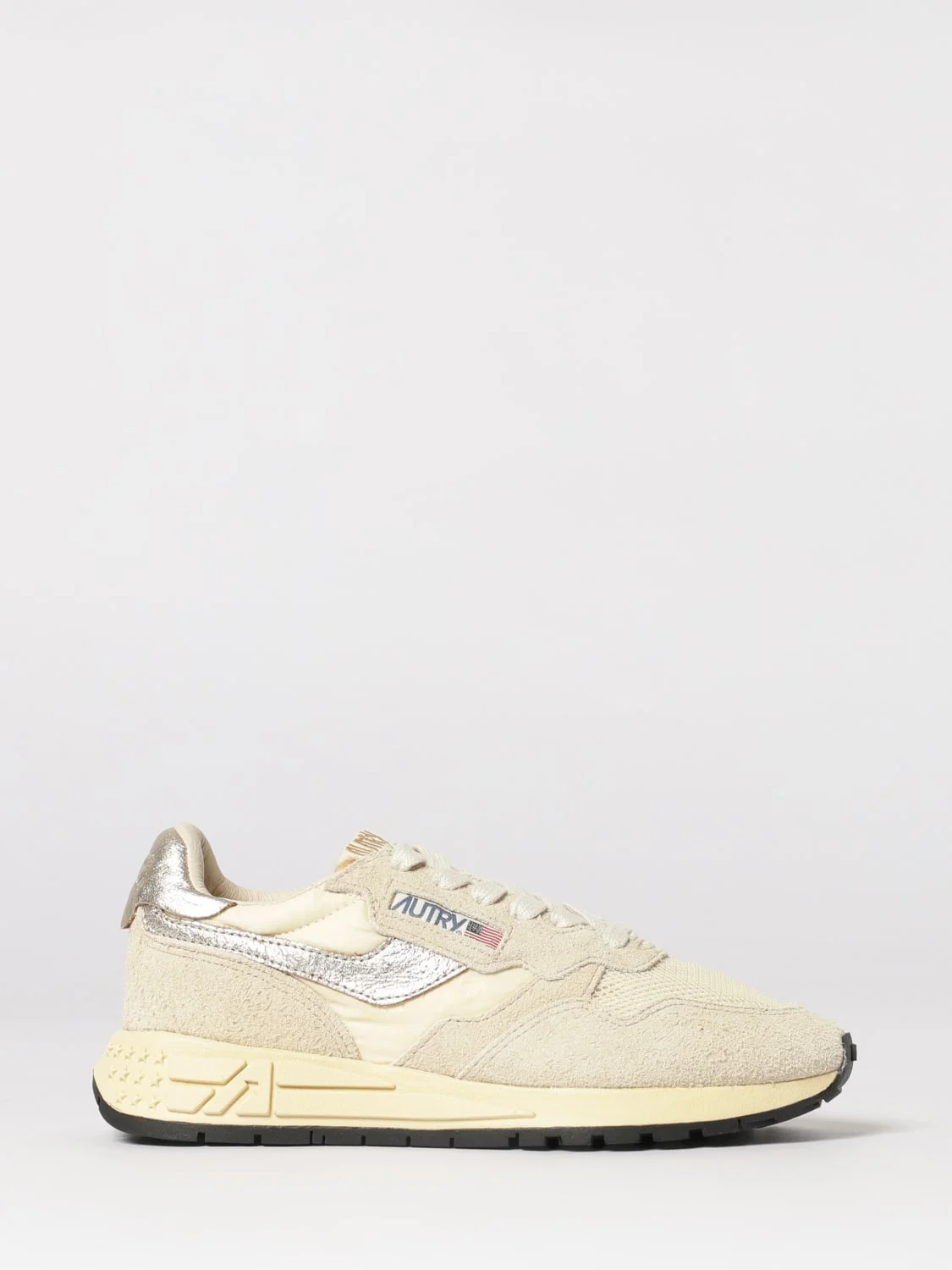 DESCRIPTION - Style: Sporty - Logo: Contrasting - Lining: Fabric, Leather, With logo - Model: Lace up - Toe: Round - Ankle: Low top, Padded - Sole: Dented tread, Rubber - Occasion: Morning - Materials: Laminated leather, Nylon, Suede - Pattern: Logo DETAILS AND CARE Composition 50% NYLON + 40% COW LEATHER + 10% MESH SIZE AND FIT Sizes not available Designer code: WWLWUT24 Giglio Code: 440537 Designer: Autry Collection: Autry Woman Category: Shoes Autry