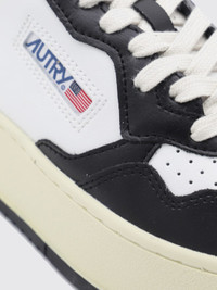MEDALIST PLATFORM SNEAKERS IN WHITE AND BLACK LEATHER