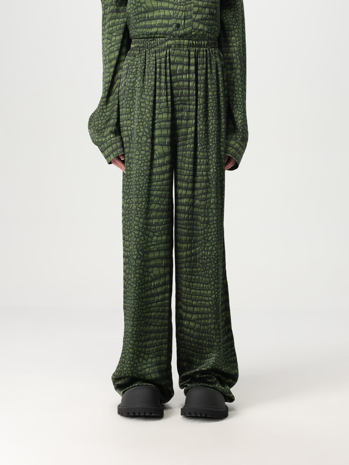 DESCRIPTION - Style: Contemporary - Model: Palazzo - Pockets: America - Waist: High waist - Bottom: With straight hemline - Materials: Silk - Pattern: undefined DETAILS AND CARE Composition SILK SIZE AND FIT Sizes not available Size and fit Regular fit Designer code: 681822TRLC7 3001 Giglio Code: 424498 Designer: Balenciaga Collection: Balenciaga Woman Category: Clothing Balenciaga