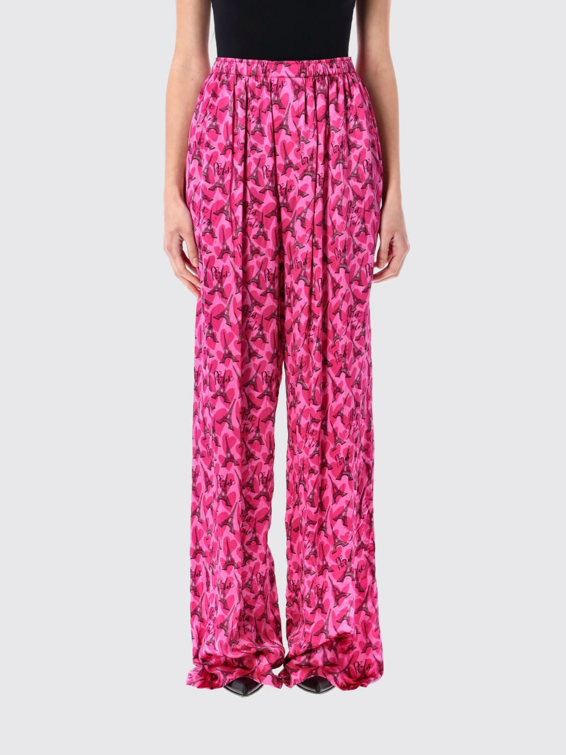 DESCRIPTION - Style: Casual - Bottom: With straight hemline - Waist: High waist - Materials: Silk - Pattern: Graphic DETAILS AND CARE Composition 100% silk SIZE AND FIT Sizes not available Size and fit Regular fit Designer code: 681822TRLI8 5630 Giglio Code: H12510 Designer: Balenciaga Collection: Balenciaga Woman Category: Clothing Balenciaga
