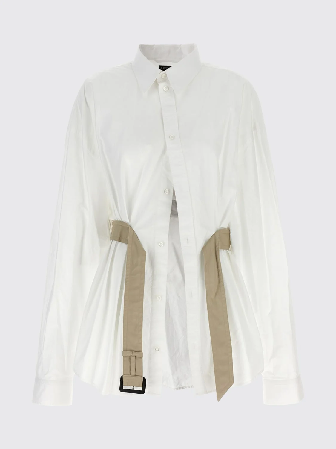 DESCRIPTION - Style: Urban-street - Neck: French - Shoulders: Regular - Closure: With buttons - Waist: With adjustable belt - Bottom: With straight hemline - Sleeves: Long sleeve shirts - Materials: Cotton poplin - Pattern: Plain-colored DETAILS AND CARE Composition GENERAL COTTON 100 - SIZE AND FIT Sizes not available Size and fit Regular fit Designer code: 809066TNM60 9000 Giglio Code: G09407 Designer: Balenciaga Collection: Clothing Balenciaga Category: Clothing > Shirt
