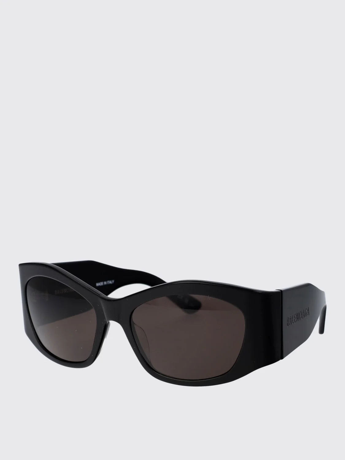 DESCRIPTION - Logo: Engraved, Lettering - Model: Cat eye - Shape: Round - Measurements: Bridge: 18, Lens width: 56 mm, Temples: 135 - Components: Dark lenses, UVA/UVB lenses - Materials: Acetate - Pattern: Plain-colored DETAILS AND CARE Composition ACETATE SIZE AND FIT Sizes not available Designer code: BB0329S 001 Giglio Code: G79231 Designer: Balenciaga Collection: Balenciaga Woman Category: Accessories Balenciaga