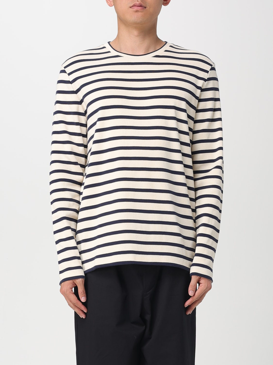 DESCRIPTION - Style: College - Logo: Back - Model: Crewneck - Neckline: Crewneck - Shoulders: Regular - Sleeves: Long - Bottom: With straight hemline - Materials: Cotton - Pattern: Stripes DETAILS AND CARE Composition _100%CO SIZE AND FIT Sizes not available Size and fit Regular fit Designer code: J47NH0002J46497 124 Giglio Code: H13275 Designer: Jil Sander Collection: Jil Sander Men Category: Clothing Jil Sander