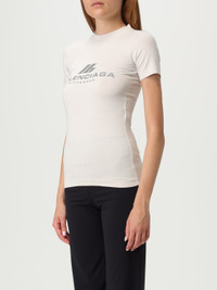 DESCRIPTION - Style: Sporty - Logo: Contrasting - Neckline: Crewneck - Shoulders: Regular - Sleeves: Short - Bottom: With straight hemline - Materials: Cotton - Pattern: Logo DETAILS AND CARE Composition GENERAL COTTON 100 - SIZE AND FIT Sizes not available Size and fit Slim fit Designer code: 768075TQVU1 9016 Giglio Code: H04842 Designer: Balenciaga Collection: Balenciaga Woman Category: Clothing Balenciaga