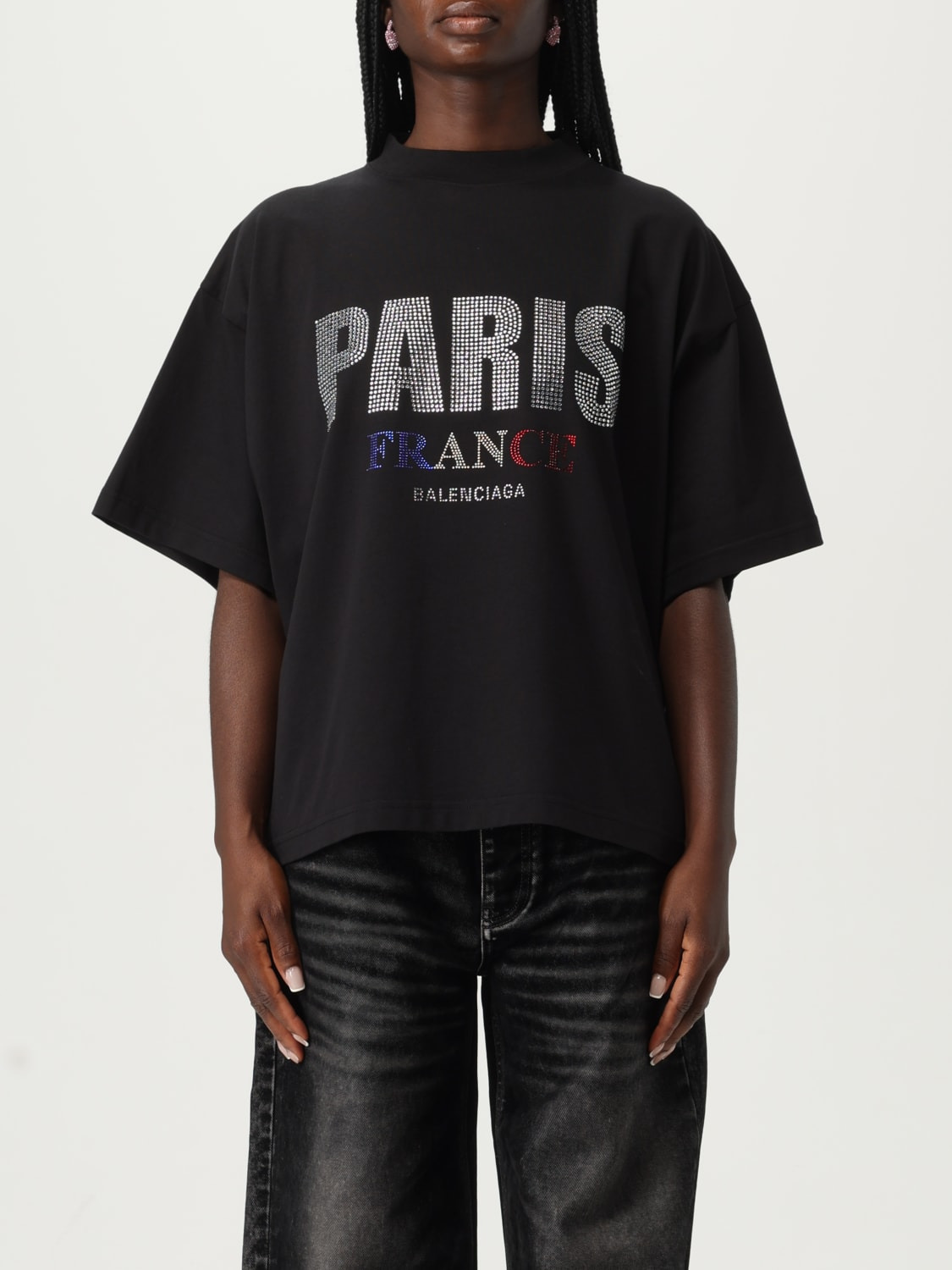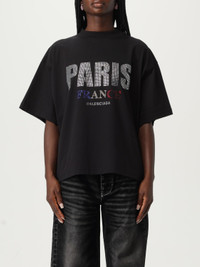 DESCRIPTION - Style: Sporty - Logo: Print - Details: With rhinestones - Neckline: Crewneck - Shoulders: Relaxed - Sleeves: Short - Bottom: With straight hemline - Materials: Cotton - Pattern: undefined DETAILS AND CARE Composition T COTTON 100% SIZE AND FIT Sizes not available Size and fit Relaxed fit Designer code: 818431TRVL5 1000 Giglio Code: 424500 Designer: Balenciaga Collection: Balenciaga Woman Category: Clothing Balenciaga