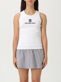 DESCRIPTION - Style: Sporty - Logo: Jacquard - Model: Ribbed - Neckline: Crewneck - Shoulders: Regular - Sleeves: Sleeveless - Bottom: With straight hemline - Materials: Viscose - Pattern: Logo DETAILS AND CARE Composition T VISCOSE 83% T POLYESTER 17% SIZE AND FIT Sizes not available Size and fit Slim fit Designer code: 835500T5231 9040 Giglio Code: H15708 Designer: Balenciaga Collection: Balenciaga Woman Category: Clothing Balenciaga