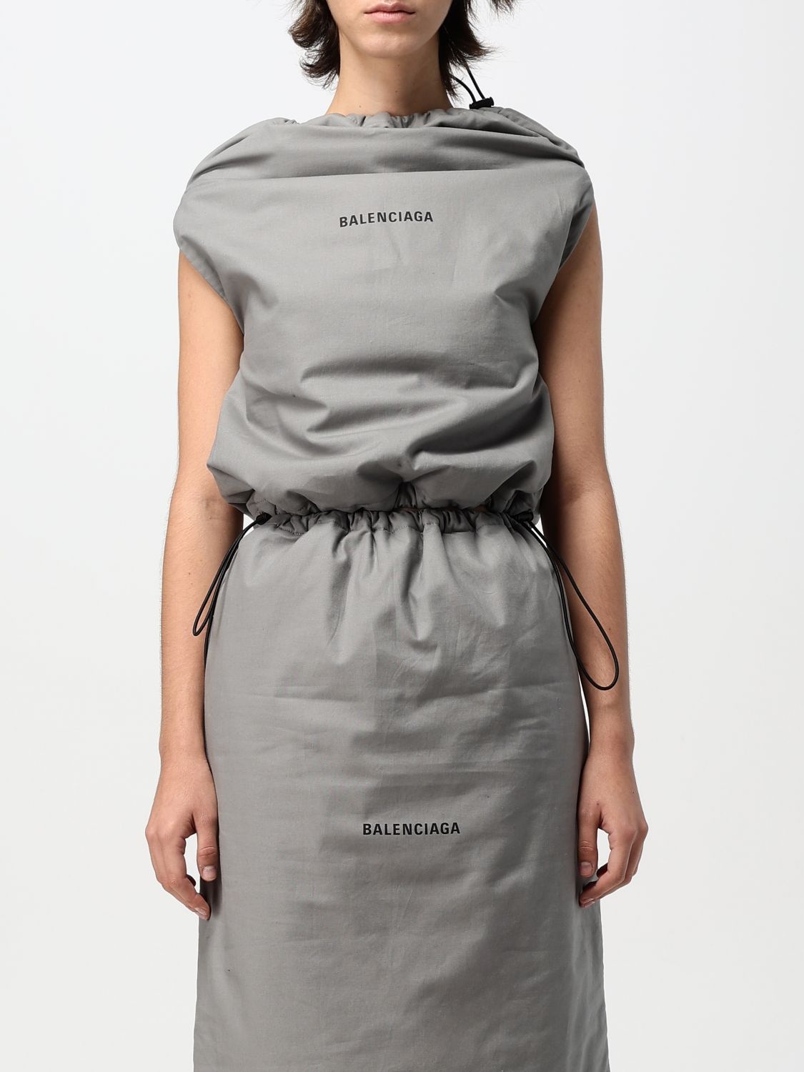DESCRIPTION - Logo: Contrasting - Neckline: Crewneck - Shoulders: Regular - Sleeves: Sleeveless - Bottom: With straight hemline - Materials: Cotton - Pattern: Plain-colored DETAILS AND CARE Composition not available SIZE AND FIT Sizes not available Size and fit Regular fit Designer code: 809439TRM13 9243 Giglio Code: G20010 Designer: Balenciaga Collection: Balenciaga Woman Category: Clothing Balenciaga