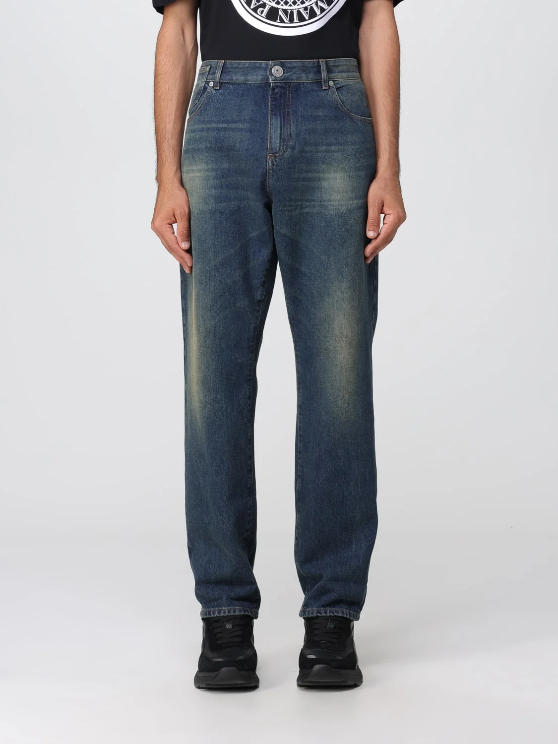 DESCRIPTION - Style: Urban-street - Pockets: 5-pocket - Waist: Medium - Bottom: With straight hemline - Closure: With button and zip - Materials: Cotton denim - Pattern: Plain-colored DETAILS AND CARE Composition 100%COTTON SIZE AND FIT Sizes not available Size and fit Regular fit Designer code: BH0MI044DD93 6KD Giglio Code: 398631 Designer: Balmain Collection: Balmain Men Category: Clothing Balmain