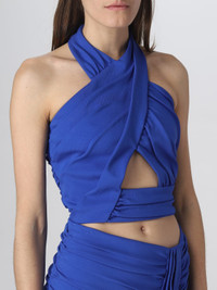 DESCRIPTION - Style: Contemporary - Model: Cut-out - Neckline: Halter neck - Closure: Back closure with zip - Bottom: With straight hemline - Sleeves: Off-the-shoulder tops - Materials: Jersey - Pattern: Graphic DETAILS AND CARE Composition 75%VISCOSE 17%POLYAMIDE 08%ELASTHANNE SIZE AND FIT Sizes not available Size and fit Cropped fita Designer code: AF1AB270JF31 6CH Giglio Code: E00681 Designer: Balmain Collection: Balmain Woman Category: Clothing Balmain