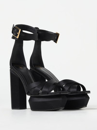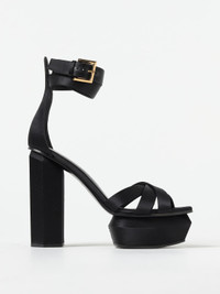 DESCRIPTION - Occasion: Evening and party - Lining: With laminated logo - Toe: Open, Squared - Ankle: With strap - Sole: Leather, With platform - Heel: Tacco alto quadrato - Materials: Satin - Pattern: Plain-colored DETAILS AND CARE Composition Outer leather 100u ; Lining leather 100% ; So SIZE AND FIT Sizes Heel: 13,5 cm Designer code: BN1UH851TRSO 0PA Giglio Code: E85714 Designer: Balmain Collection: Balmain Woman Category: Shoes Balmain