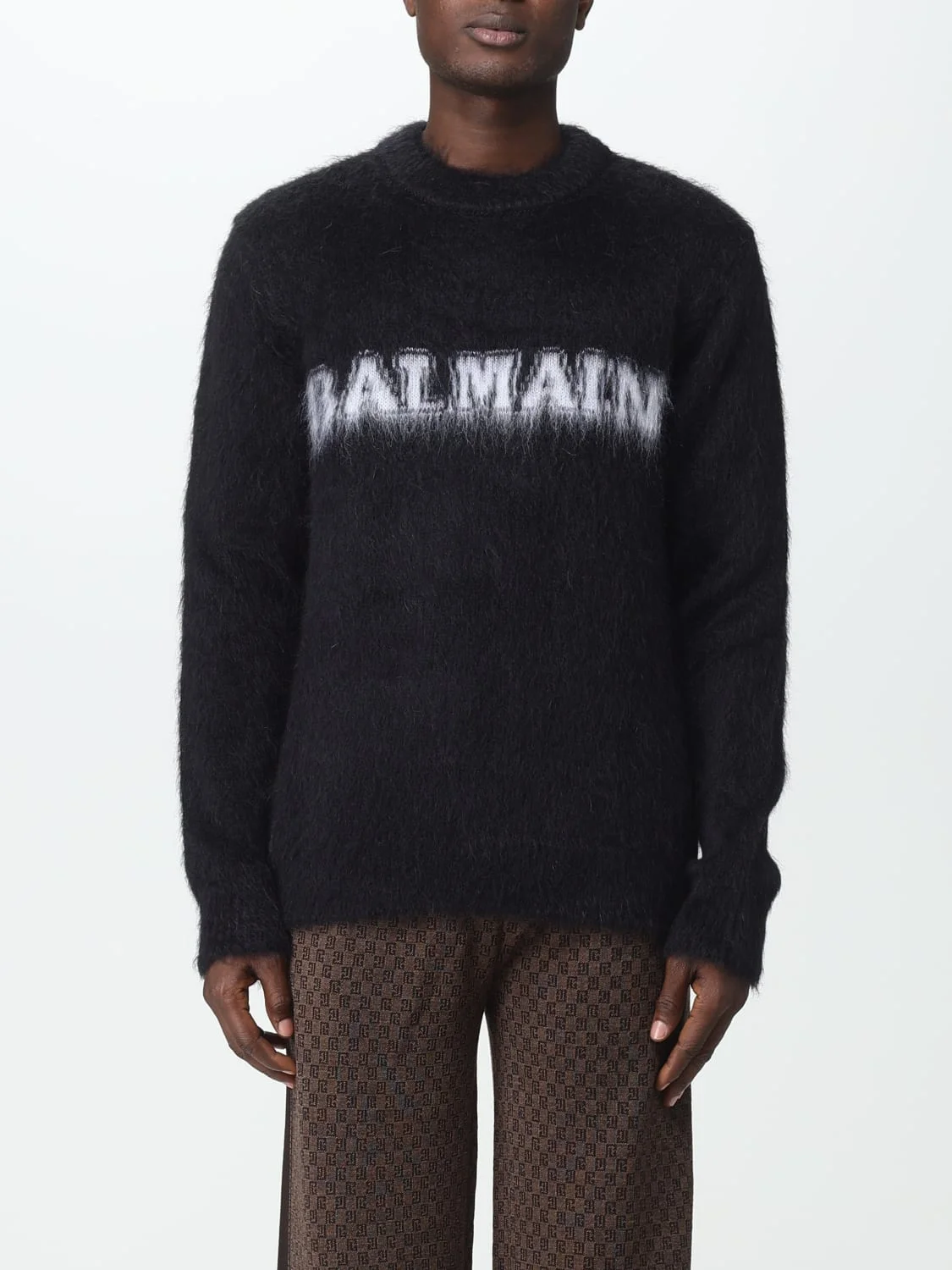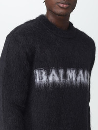 DESCRIPTION - Style: Contemporary - Logo: Jacquard - Model: Crewneck - Neckline: Crewneck - Shoulders: Regular - Sleeves: Long - Cuffs: Ribbed - Bottom: With ribbed edges - Materials: Mohair - Pattern: Logo DETAILS AND CARE Composition 60%GOAT MOHAIR25%PL11%V WO 04%WO SIZE AND FIT Sizes not available Size and fit Slim fit Designer code: BH0KD000KF38 EAB Giglio Code: 398627 Designer: Balmain Collection: Balmain Men Category: Clothing Balmain