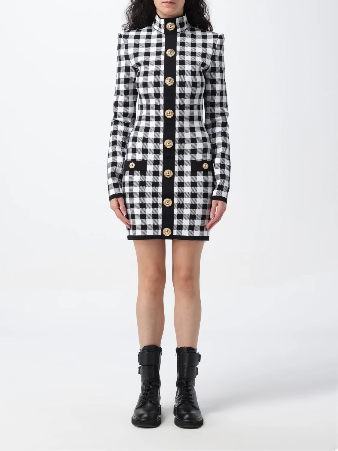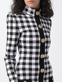 DESCRIPTION - Details: With buttons - Length: Short - Sleeves: Long - Materials: Viscose blend - Pattern: Check DETAILS AND CARE Composition 90% viscose, 10% polyamide SIZE AND FIT Sizes not available Designer code: CF1R8019KF51 EAB Giglio Code: F15245 Designer: Balmain Collection: Balmain Woman Category: Clothing Balmain