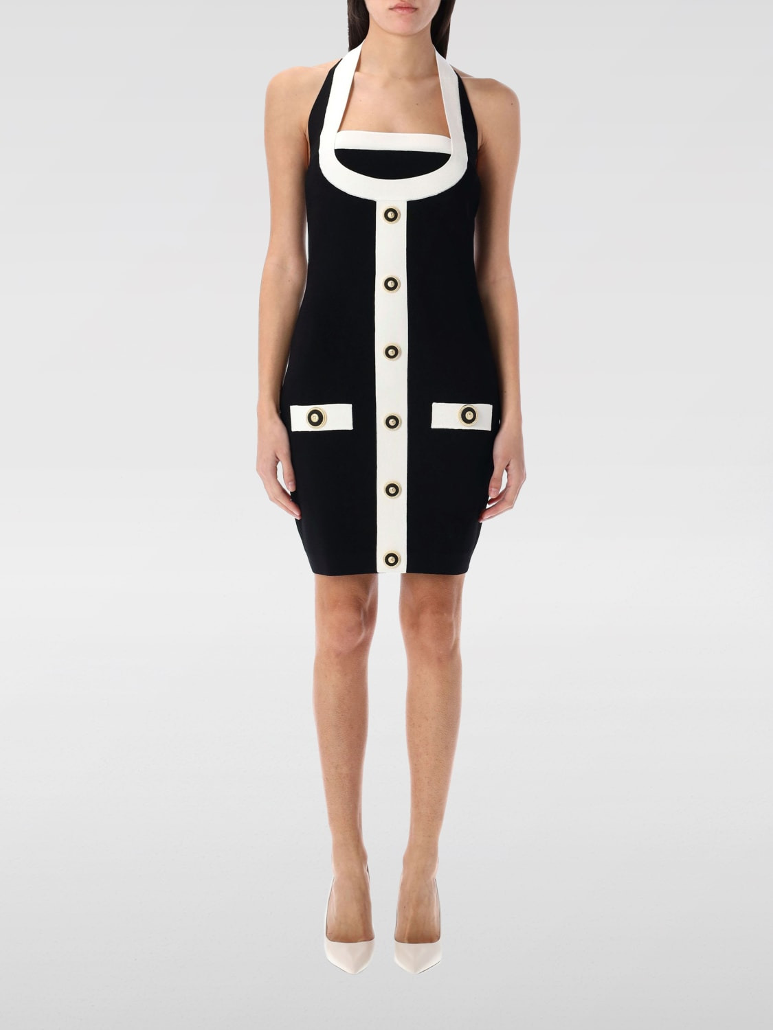 DESCRIPTION - Style: Basic - Neckline: Halter neck - Shoulders: Regular - Closure: With zip - Bottom: With straight hemline - Model: Knit - Length: Mini dresses - Occasion: Morning dresses - Sleeves: Sleeveless dresses - Materials: Viscose blend - Pattern: undefined DETAILS AND CARE Composition VISCOSE SIZE AND FIT Sizes not available Size and fit Slim fit Designer code: EF1R2390KH99 EAB Giglio Code: G48686 Designer: Balmain Collection: Balmain Woman Category: Clothing Balmain