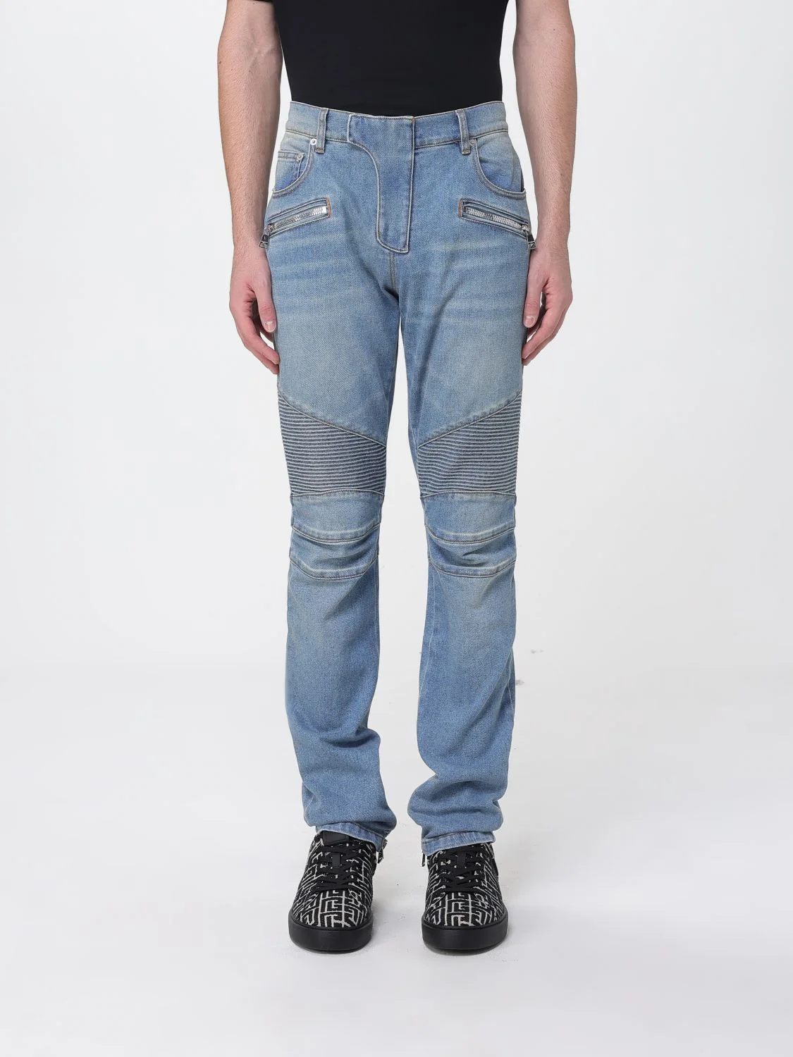 DESCRIPTION - Style: Urban-street - Pockets: 5-pocket, With zip - Waist: Medium, With loops - Bottom: With straight hemline - Closure: With button and zip - Materials: Cotton denim - Pattern: Plain-colored DETAILS AND CARE Composition 98% cotton, 2% elastane SIZE AND FIT Sizes not available Size and fit Slim fit Designer code: FH1MG115DF81 6AW Giglio Code: H38739 Designer: Balmain Collection: Balmain Men Category: Clothing Balmain