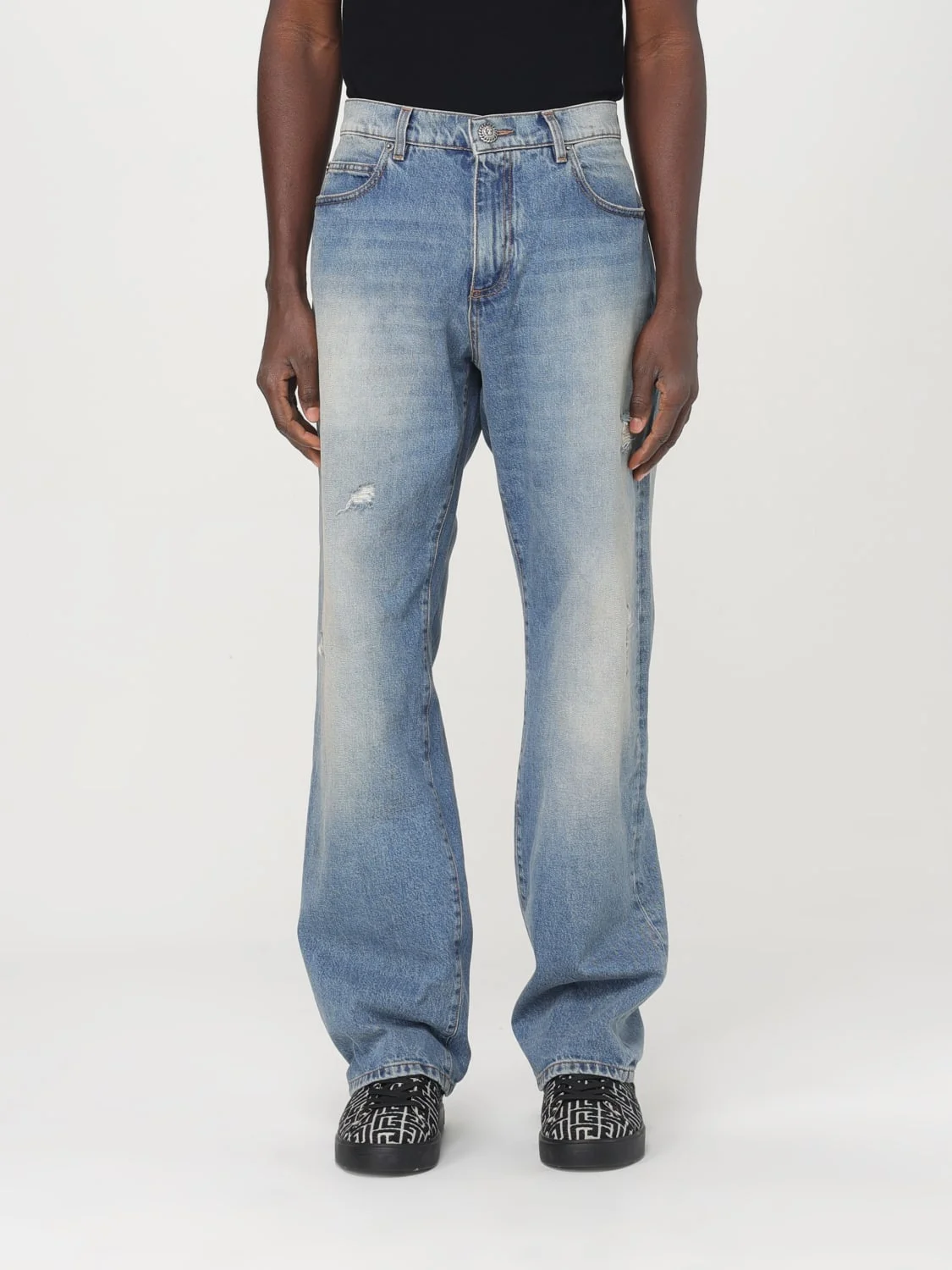 DESCRIPTION - Style: Urban-street - Pockets: 5-pocket - Waist: Medium - Bottom: With straight hemline - Closure: With button and zip - Materials: Denim - Pattern: Plain-colored DETAILS AND CARE Composition 100%COTTON SIZE AND FIT Sizes not available Size and fit Regular fit Designer code: EH1ML155DF44 6FF Giglio Code: 420943 Designer: Balmain Collection: Balmain Men Category: Clothing Balmain