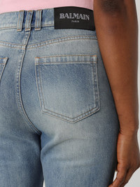 DESCRIPTION - Style: Urban-street - Pockets: 5-pocket - Waist: High waist - Bottom: With straight hemline - Closure: With button and zip - Materials: Cotton denim - Pattern: Plain-colored DETAILS AND CARE Composition not available SIZE AND FIT Sizes not available Size and fit Regular fit Designer code: FF1MJ116DF79 6FC Giglio Code: H14819 Designer: Balmain Collection: Balmain Woman Category: Clothing Balmain