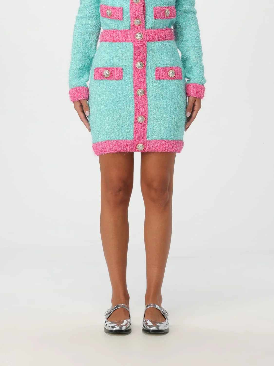 DESCRIPTION - Length: Mini - Closure: Back closure with zip - Waist: High - Bottom: With straight hemline - Materials: Cotton blend - Pattern: Plain-colored DETAILS AND CARE Composition 38% co, 36% vi, 18% pa, 8% pl SIZE AND FIT Sizes not available Size and fit Regular fit Designer code: DF1LB292KG70 UIH Giglio Code: G01208 Designer: Balmain Collection: Balmain Woman Category: Clothing Balmain