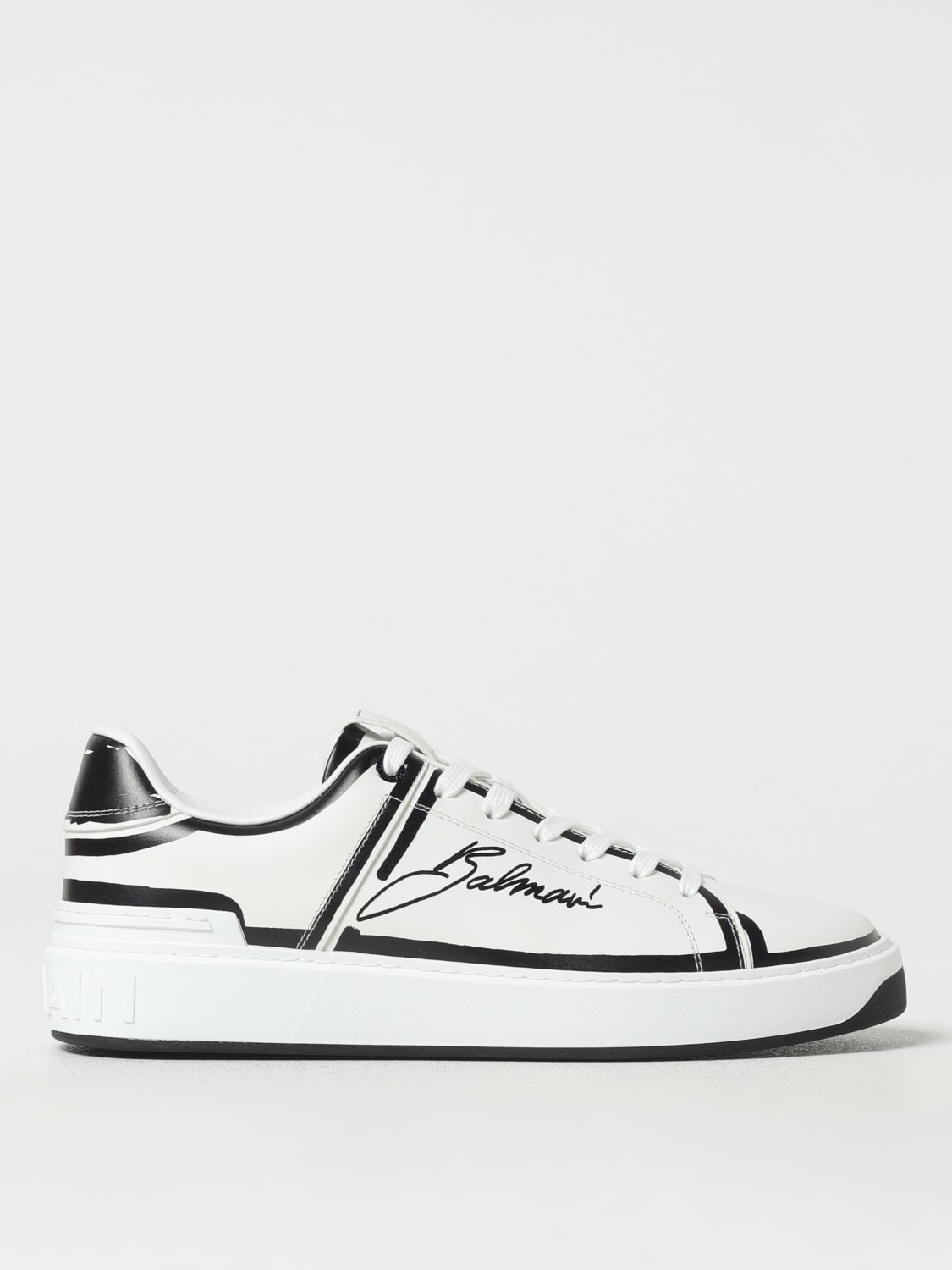 DESCRIPTION - Logo: Contrasting, Print - Lining: Leather, With logo - Model: Lace up - Toe: Round - Ankle: Low top, Padded - Sole: Rubber - Materials: Smooth calfskin - Pattern: Logo DETAILS AND CARE Composition 100 AF SIZE AND FIT Sizes not available Designer code: EM1VI288LCLP GAB Giglio Code: 420947 Designer: Balmain Collection: Balmain Men Category: Shoes Balmain