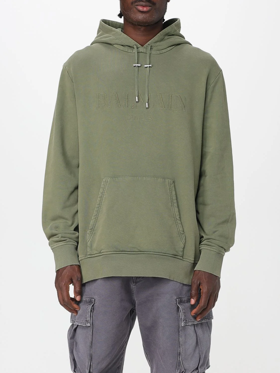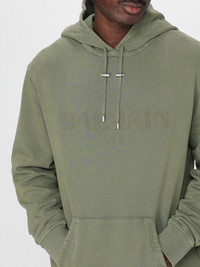 DESCRIPTION - Style: Sporty - Hood: With drawstrings - Shoulders: Relaxed - Sleeves: Long - Cuffs: Stretch - Pockets: Kangaroo pocket - Bottom: With straight hemline - Model: With hood - Materials: Cotton - Pattern: Plain-colored DETAILS AND CARE Composition Cotton | 100%ORGANIC COTTON SIZE AND FIT Sizes not available Size and fit Relaxed fit Designer code: FH1JT047BC72 UIA Giglio Code: H33830 Designer: Balmain Collection: Balmain Men Category: Clothing Balmain