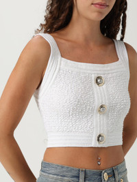 button-embellished cropped top