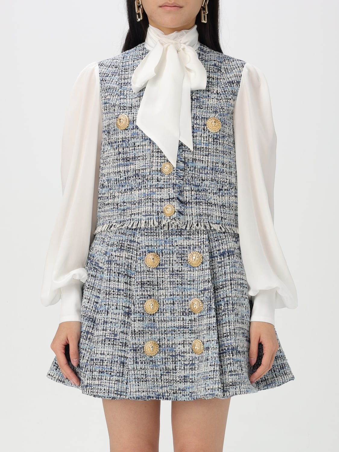 DESCRIPTION - Style: Chic - Neck: Sash - Shoulders: Regular - Closure: With buttons - Bottom: With straight hemline - Sleeves: Long sleeve tops - Materials: Tweed - Pattern: undefined DETAILS AND CARE Composition 78% cotton 10% acetate 8% vi 3% polyamide 1% SIZE AND FIT Sizes not available Size and fit Regular fit Designer code: EF1SD211MG25 SOF Giglio Code: G46907 Designer: Balmain Collection: Balmain Woman Category: Clothing Balmain