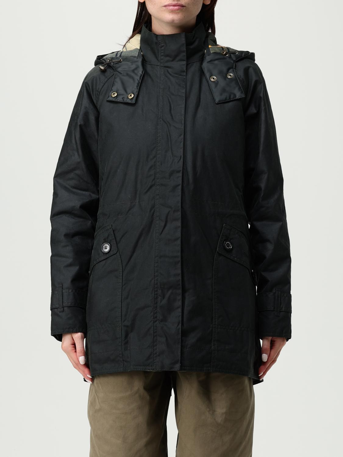 DESCRIPTION - Style: Casual - Hood: Removable - Shoulders: Relaxed - Sleeves: Long - Closure: Concealed - Pockets: Patch pocket with flap and button - Bottom: With straight hemline - Model: With hood - Length: Short jackets - Materials: Waxed cotton - Pattern: Plain-colored DETAILS AND CARE Composition not available SIZE AND FIT Sizes not available Size and fit Regular fit Designer code: LWX1179 G51 Giglio Code: H30703 Designer: Barbour Collection: Barbour Woman Category: Clothing Barbour