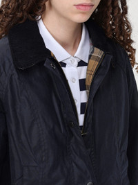 DESCRIPTION - Style: Classic - Neck: Corduroy - Shoulders: Relaxed - Sleeves: Long - Closure: With zip and concealed buttons - Bottom: With straight hemline - Pockets: Patch with flap - Length: Short jackets - Materials: Waxed cotton - Pattern: Plain-colored DETAILS AND CARE Composition 100% WAXED COTTON SIZE AND FIT Sizes not available Size and fit Relaxed fit Designer code: LWX0667 NY91 Giglio Code: 429420 Designer: Barbour Collection: Barbour Woman Category: Clothing Barbour