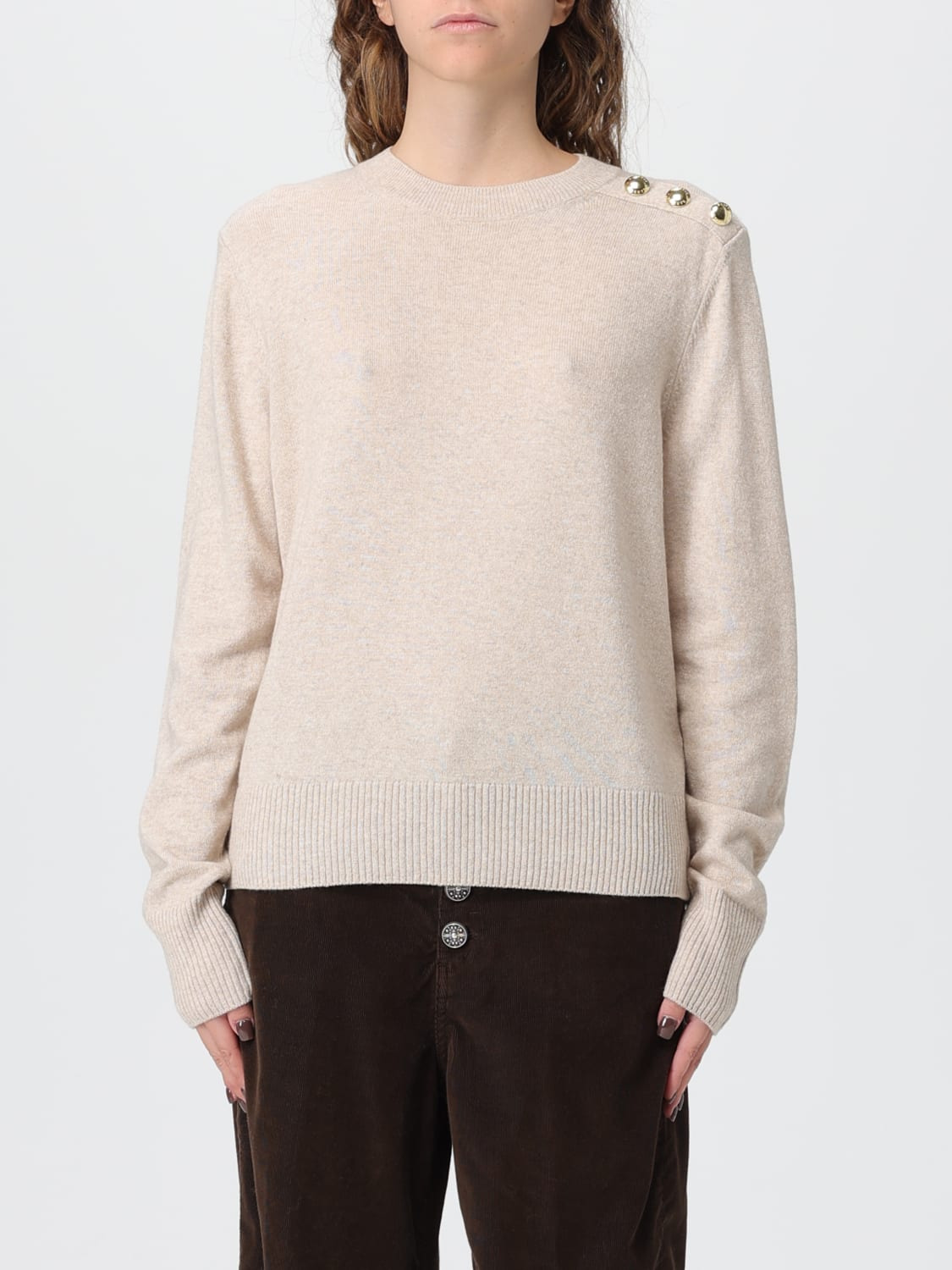 DESCRIPTION - Style: Casual - Model: Crewneck - Neckline: Crewneck - Shoulders: Regular - Sleeves: Long - Cuffs: Ribbed - Closure: With buttons on the shoulder - Bottom: With ribbed edges - Materials: Viscose blend - Pattern: Plain-colored DETAILS AND CARE Composition _ SIZE AND FIT Sizes not available Size and fit Slim fit Designer code: LKN1679 BE11 Giglio Code: H52268 Designer: Barbour Collection: Barbour Woman Category: Clothing Barbour