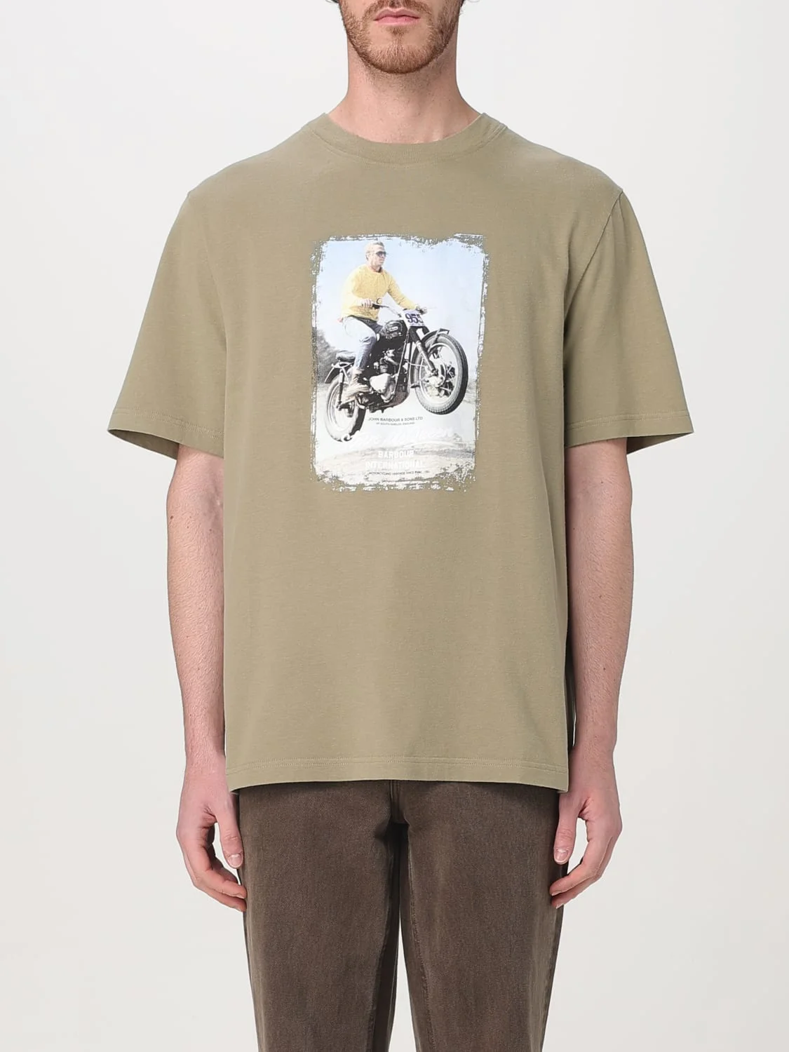 DESCRIPTION - Style: Contemporary - Logo: Contrasting - Model: Crewneck - Neckline: Crewneck - Shoulders: Relaxed - Sleeves: Short - Bottom: With straight hemline - Materials: Cotton - Pattern: Graphic DETAILS AND CARE Composition 100%COTTON SIZE AND FIT Sizes not available Size and fit Relaxed fit Designer code: MTS1435 OL11 Giglio Code: G74696 Designer: Barbour Collection: Barbour Men Category: Clothing Barbour