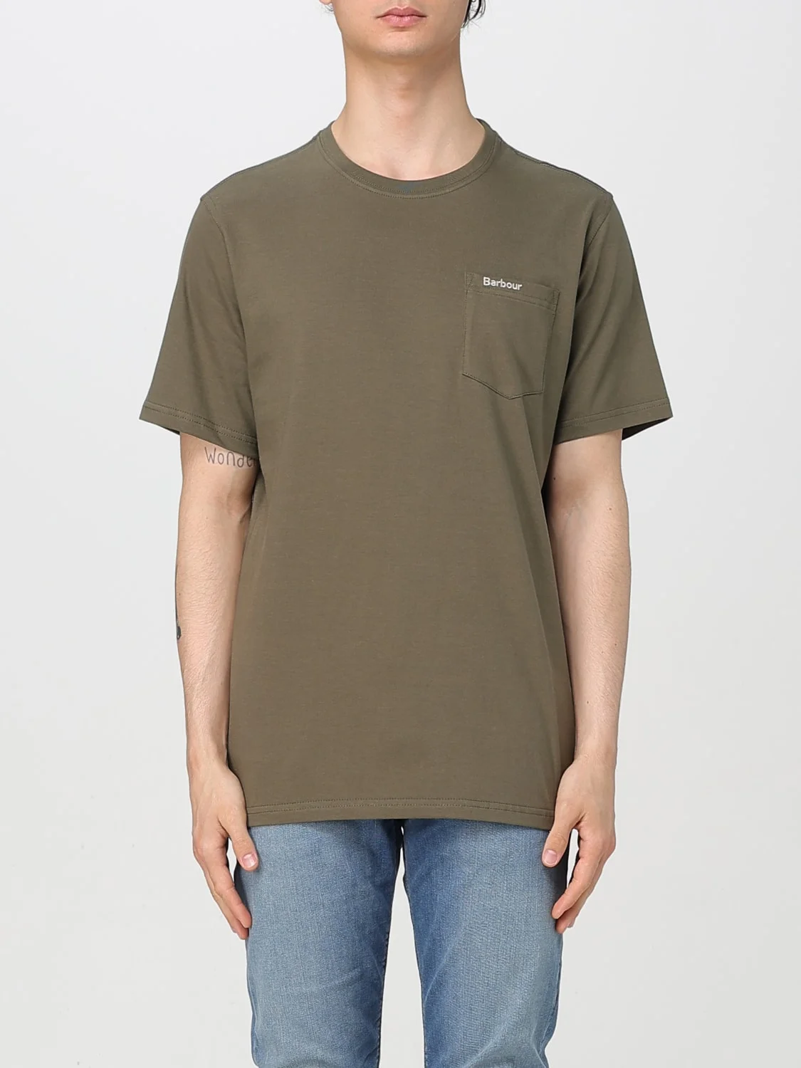 DESCRIPTION - Style: Sporty - Logo: Contrasting - Model: Crewneck - Neckline: Crewneck - Shoulders: Regular - Sleeves: Short - Pockets: Patch pocket - Bottom: With straight hemline - Materials: Cotton - Pattern: Logo DETAILS AND CARE Composition not available SIZE AND FIT Sizes not available Size and fit Regular fit Designer code: MTS1114 GN84 Giglio Code: G75382 Designer: Barbour Collection: Barbour Men Category: Clothing Barbour