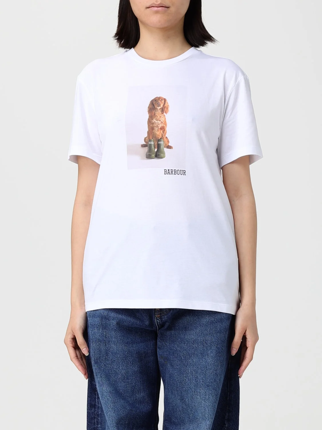 DESCRIPTION - Style: Contemporary, Sporty - Logo: Contrasting - Model: Crewneck - Neckline: Crewneck - Shoulders: Regular - Sleeves: Short - Bottom: With straight hemline - Occasion: Morning - Materials: Cotton - Pattern: Graphic DETAILS AND CARE Composition not available SIZE AND FIT Sizes not available Size and fit Regular fit Designer code: LTS0715 WH11 Giglio Code: I01863 Designer: Barbour Collection: Clothing Barbour Category: Clothing > T-Shirt