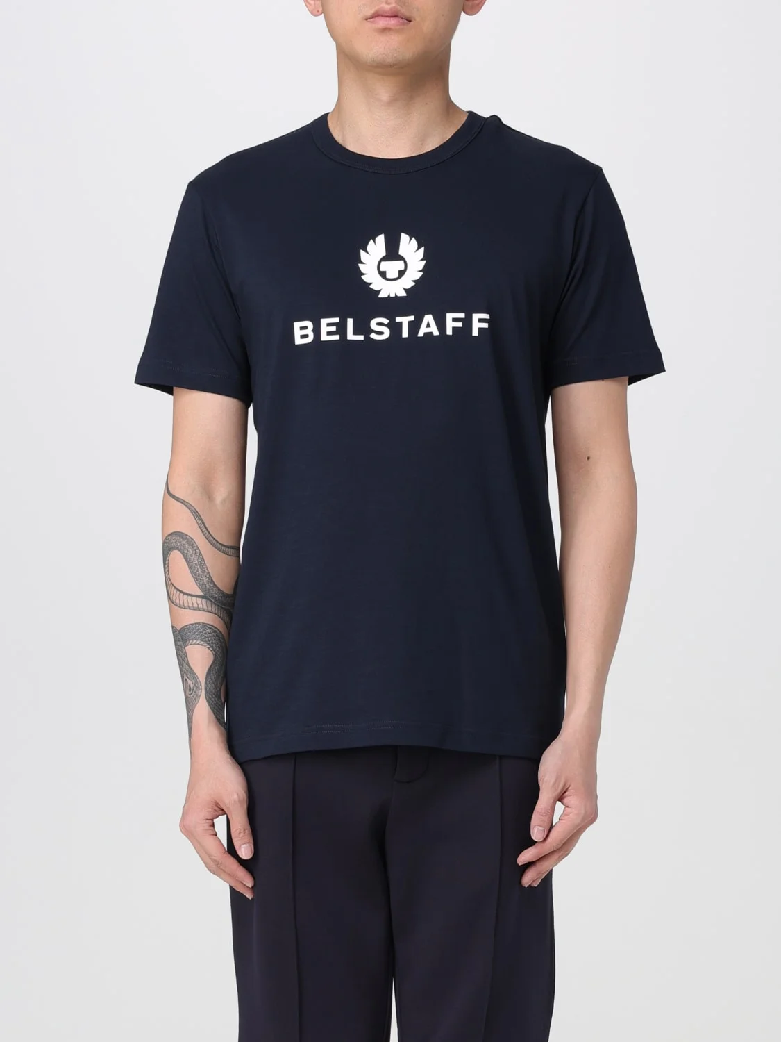 DESCRIPTION - Style: Sporty - Logo: Contrasting - Model: Crewneck - Neckline: Crewneck - Shoulders: Regular - Sleeves: Short - Bottom: With straight hemline - Materials: Cotton - Pattern: Logo DETAILS AND CARE Composition not available SIZE AND FIT Sizes not available Size and fit Regular fit Designer code: 104141 DKINK Giglio Code: G75450 Designer: Belstaff Collection: Belstaff Men Category: Clothing Belstaff