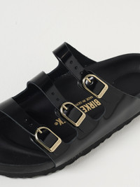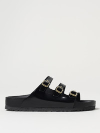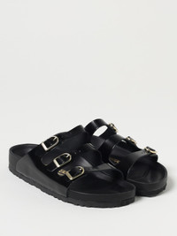 DESCRIPTION - Logo: Engraved - Lining: With logo - Model: Slip on - Closure: With double belt with buckles - Toe: Round - Sole: EVA - Heel: Low heel - Materials: Brushed leather - Pattern: Plain-colored DETAILS AND CARE Composition Upper 100% leather Footbed 100% natural cork SIZE AND FIT Sizes not available Designer code: 1029385 Giglio Code: G99187 Designer: Birkenstock Collection: Birkenstock Woman Category: Shoes Birkenstock