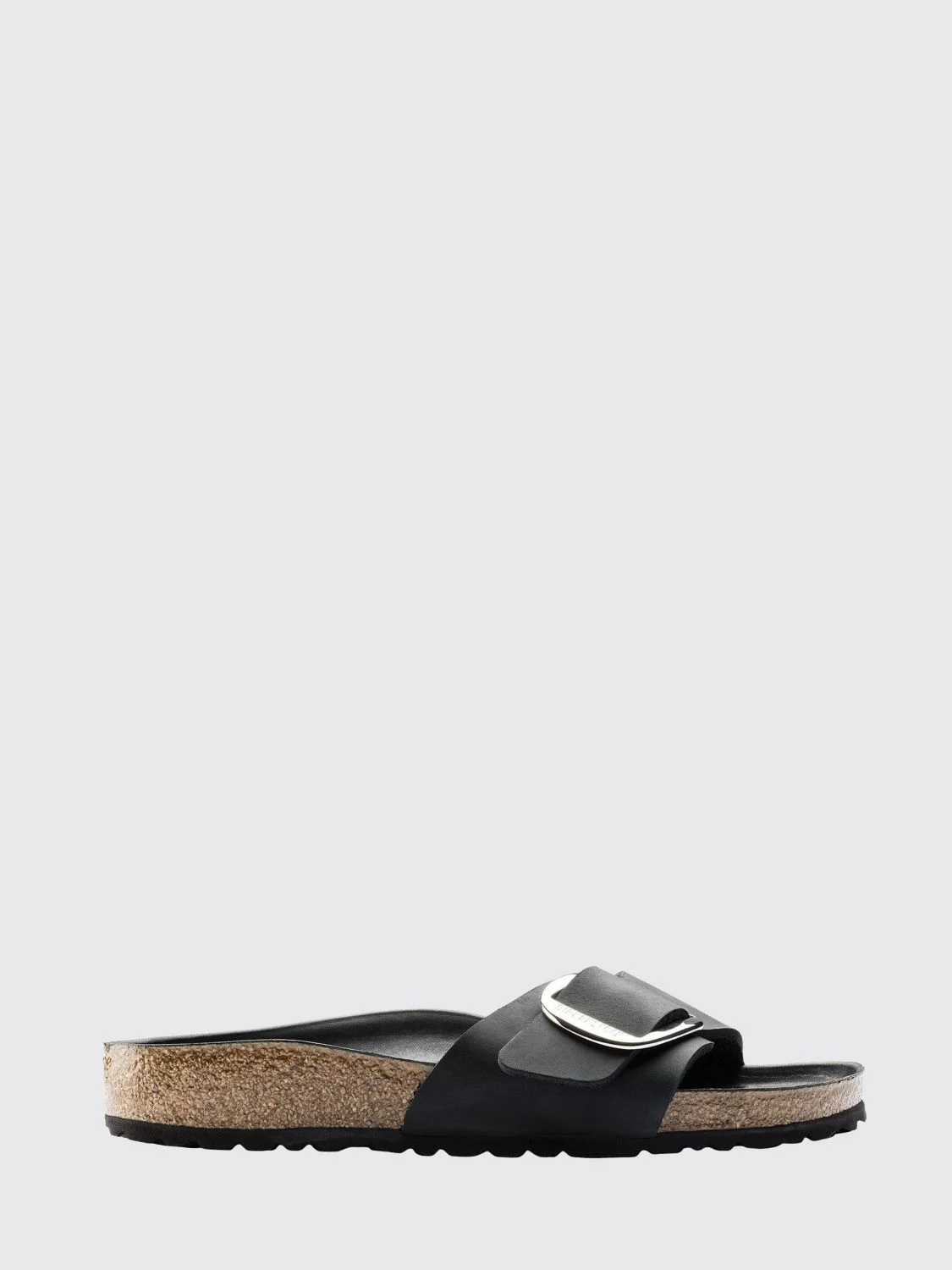 ITEM DETAILS • Slipper model • Maxi strap • Round and open toe • Birkenstock logo engraved • Logo embossed on the side • Smooth leather • Leather interior • Anatomic footbed • Cork and latex midsole • EVA sole Composition: 100% Birko-Flor® Designer code: 1006523 Giglio Code: C68935