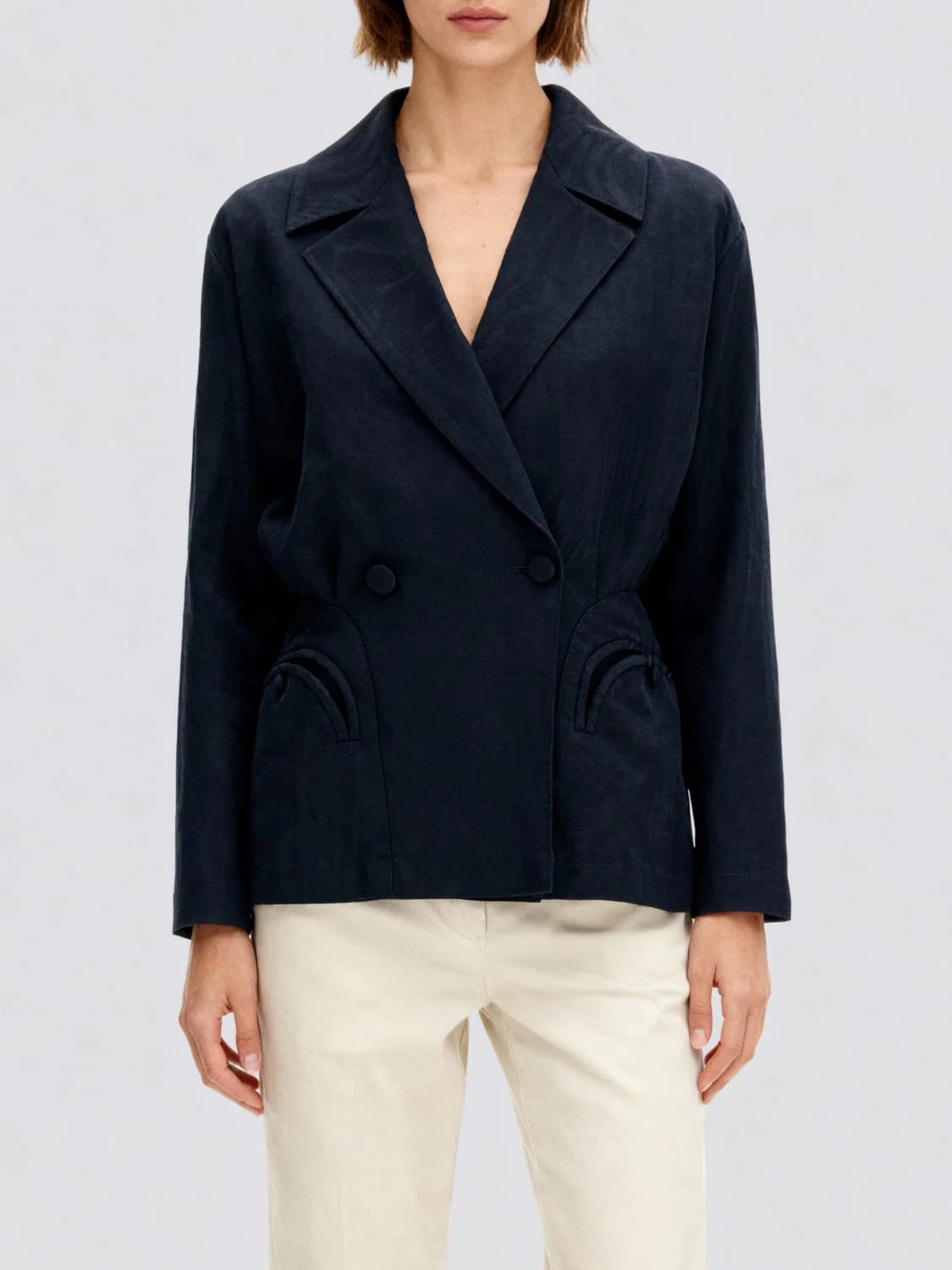 Descrizione Jacket woman BlazE Milano DETAILS AND CARE Composition 55% viscose, 45% cotton SIZE AND FIT Sizes not available Designer code: BZVDB01SRW B000 Giglio Code: H65861 Designer: Blaze Milano Collection: Blaze Milano Woman Category: Clothing Blaze Milano
