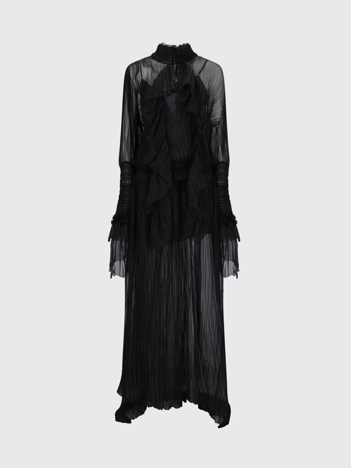 LONG PLEATED SILK CHIFFON DRESS WITH SPLIT