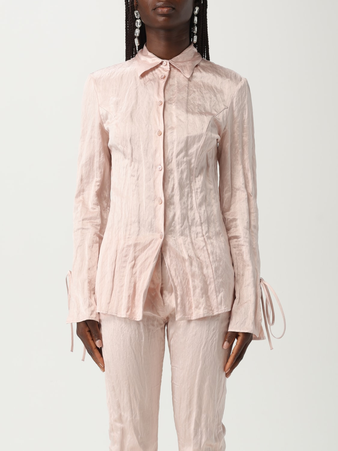 DESCRIPTION - Style: Elegant - Details: With ribbons - Neck: Italian - Shoulders: Regular - Closure: With buttons - Bottom: With straight hemline - Cuffs: Flared - Sleeves: Long sleeve shirts - Materials: Satin - Pattern: Plain-colored DETAILS AND CARE Composition not available SIZE AND FIT Sizes not available Size and fit Regular fit Designer code: 4C133A N0115 Giglio Code: G81579 Designer: Blumarine Collection: Blumarine Woman Category: Clothing Blumarine